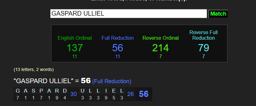 SO HE IS DEAD 56 DAYS AFTER HIS BIRTHDAY ….GASPARD ULLIEL = 56
