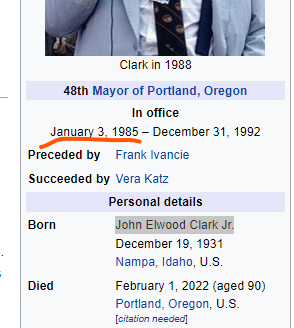 HE WAS THE FORMER PORTLAND MAYOR, DEAD, 37 YEARS AFTER TAKING OFFICE.