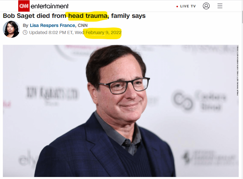 February 9, 2022February 10, 2022 BOB SAGET HEADLINE NEWS 2/9/22, CAUSE OF DEATH.. HEAD TRAUMA = 92, 9/2 LIKE THE DATE OF THE HEADLINE… HEAD TRAMA = 92 DATE 2/9/22 USA WRITTEN 9/2/22 IN THE REST OF THE WORLD YOU SEE THE 38 MURDER NUMBER THERE RIGHT? GIVE KNOWLEDGE AND SHARE THIS! Click to share on Facebook (Opens in new window) Facebook Click to share on Telegram (Opens in new window) Telegram Click to share on X (Opens in new window) X Like Loading... Related