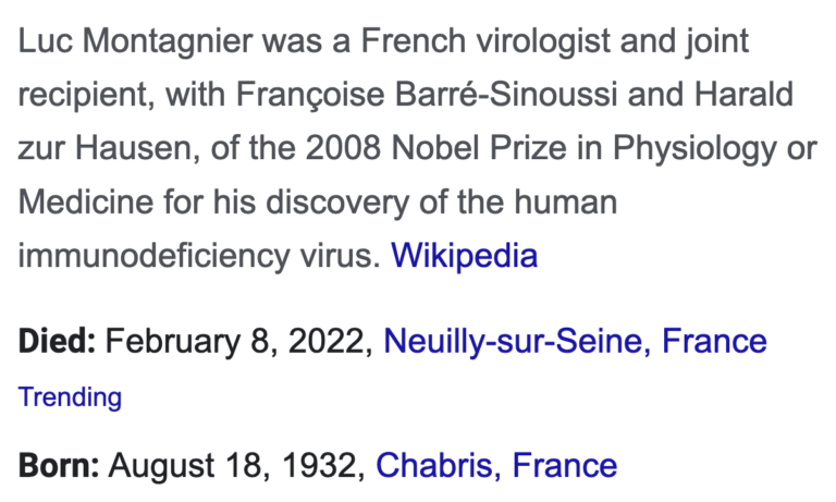 LUC MONTAGNIER, DISCOVERED HIV, DEAD AT AGE 89 BY THE NUMBERS 2/10/22 HEADLINES