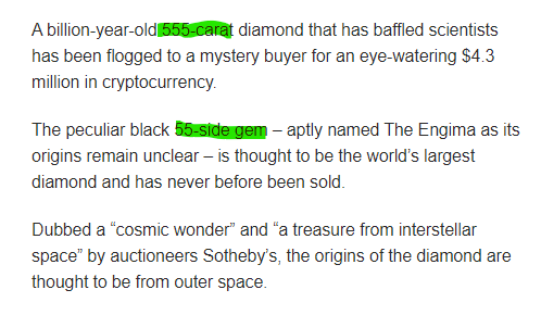 555… Looks like 666 if ya squint. An obvious homage to the Washington Monument, the world’s biggest tribute to any specific Freemason, which is 555 (or 555.5) feet tall, depending on the source. Sources differ because sone factor in a few inches of compression into the once-swampy D.C. soil. It’s a clever way of disguising the fact that it’s from 6660 to 6666 inches tall. The number does 100% begin with 666 according to all sources, including debunkers. I guess I’ll rant about it. So many numbers… The capstone is allegedly 666 inches tall. As for Enigma having 55 sides, the Park Service says the WM’s base is 55 feet, or 660 inches, on each side, though many others say it’s 666 inches on each side. (This can be easily measurable by civilians, so I trust the latter measurement.)