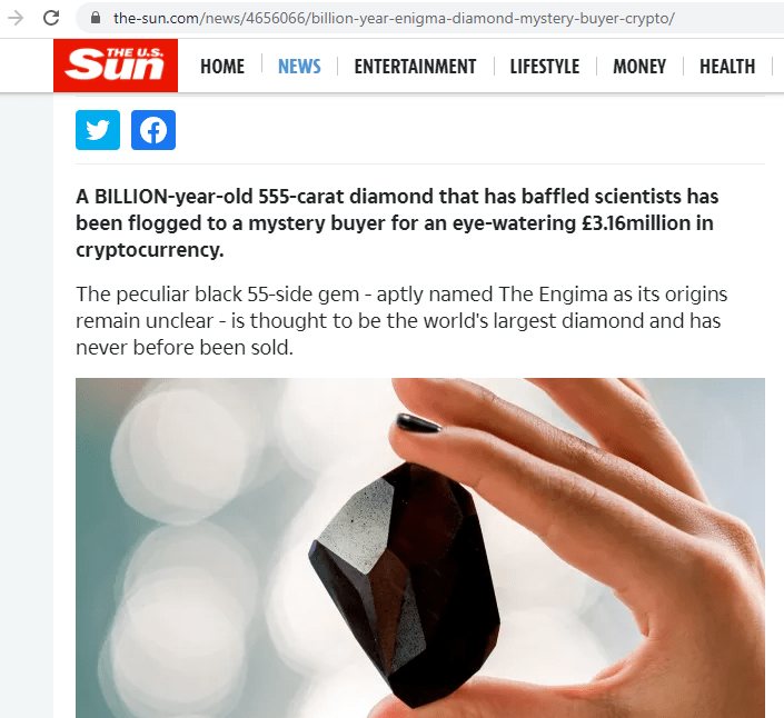 A DIAMOND THAT FELL FOR SPACE MAKES HEADLINES FOR AUCTION BID ON 2/8/22, FEBURARY 8TH