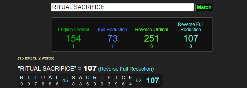 RITUAL SACRIFICE = 107