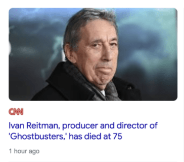 Reitman is dead 38-years after the 1984 Ghostbusters release.