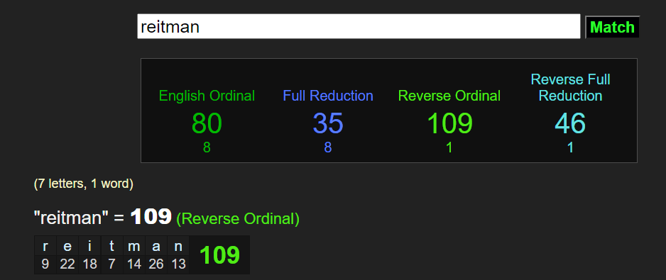 REITMAN=109 DEAD 109 DAYS AFTER HIS BIRTHDAY