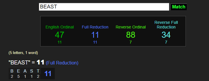 BEAST =11 BUT LOOK AT THE 47 / 74 CONNECTIONS