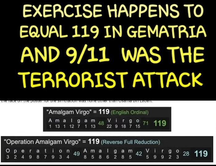 102 DAYS BEFORE THE ATTACK OF 9/11, THE GOVT DID A SIMULATION FEATURING OSAMA HIMSELF AS THE “TERORIST” AND IT WAS CALLED ‘AMALGAM VIRGO’
