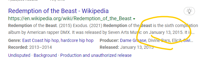 NOW WE HAVE DMX DEAD 113 DAYS AFTER HIS BIRTHDAY ON 4/9.