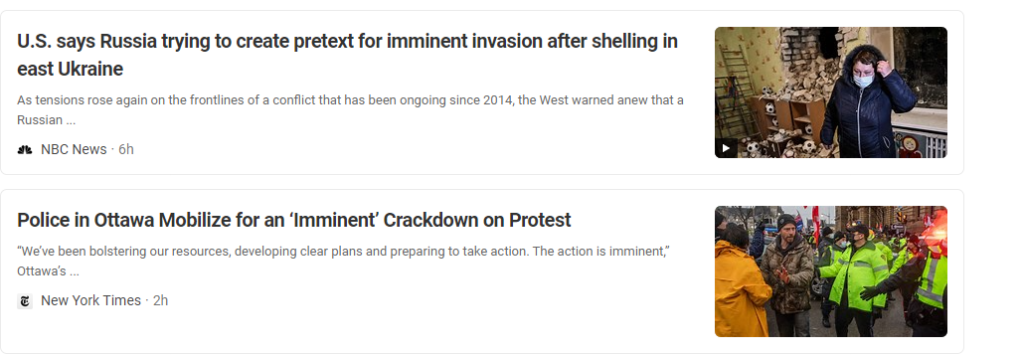 NOTICE THE WORD ‘IMMINENT’ IN BOTH THE UKRAINE/RUSSIA CHAOS NEWS AND IN THE TRUCKER OTTAWA PROTEST HEADLINES. (SEE MY OTHER POSTS ABOUT BOTH)