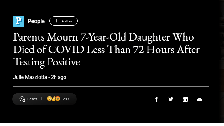 CHILD AGE 7 DIES 72 HOURS AFTER GETTING COVID ON 2/7 REALLY?