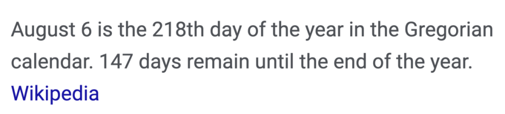 IT WAS TOLD THAT IT ENDED ON AUG 6TH, THE 218th DAY OF THE YEAR
