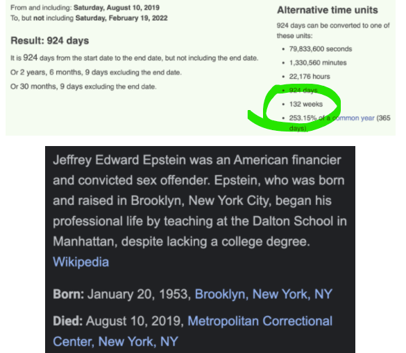 132 WEEKS AFTER EPSTEIN WAS SACRIFICED