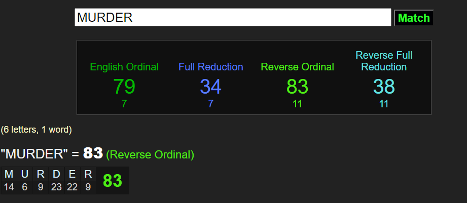 AND THERE IS THE 83 WE SEE IN ALL THE MURDERS IN HOLLYWOOD