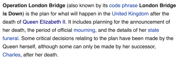 THE PLAN FOR WHEN THE QUEEN DIES IS CALLED ‘OPERATION LONDON BRIDGE