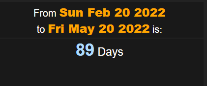 TODAY TIL MAY 20TH (THE EXPECTED DEMISE OF THE QUEEN) IS 89 DAYS