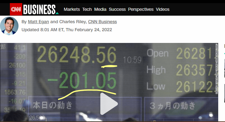 February 24, 2022 CNN VISUAL SYMBOLYSM OF STOCK PRICES ON 2/24/22 THAT 201 AND 56 GIVE KNOWLEDGE AND SHARE THIS! Click to share on Facebook (Opens in new window) Facebook Click to share on Telegram (Opens in new window) Telegram Click to share on X (Opens in new window) X Like Loading... Related