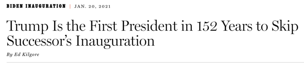 TRUMP WAS FIRST PRESIDENT IN 152 TO YEARS TO SKIP INAUGURATION