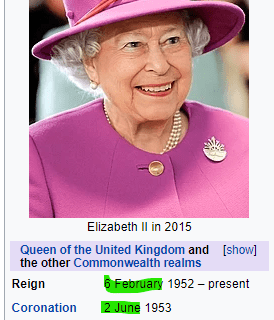 NOTICE SHE WAS CORONATED ON 2/6 BUT HER REIGN BEGAN ON 6/2