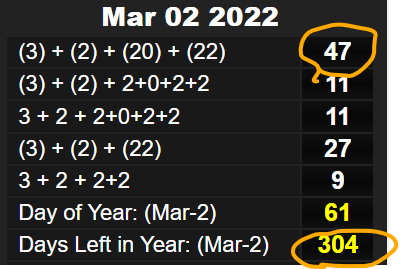 DIES MARCH 2 THE DAY LEAVING 304 DAYS