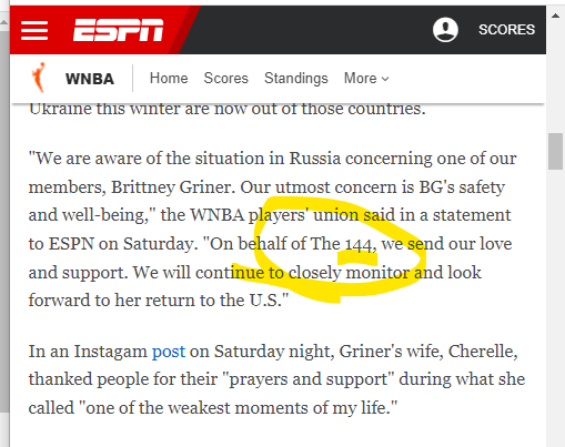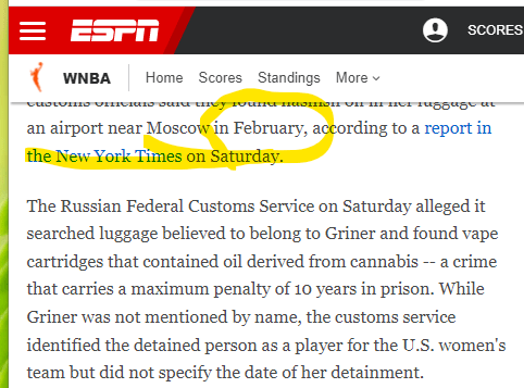 BRITNEY GRINER DETAINED IN RUSSIA (MORE RUSSIA/UKRAINE FEAR) FOR 3/5.