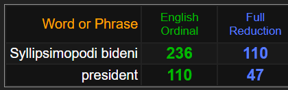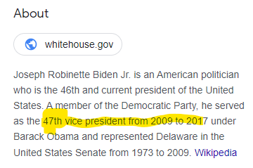 Biden is also the 45th person to be U.S. President, and 45 is the 9th triangular number.