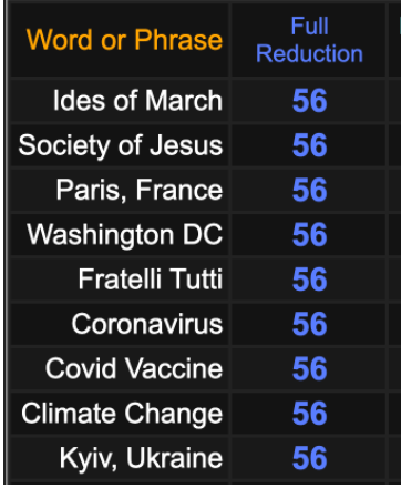 TODAY HAS A DATE NUMEROLOGY OF 56, AND AS WE HAVE STUDIED AND SEEN OVER THE LAST 2 YEARS OF THE AGENDA, 56 WAS A MAIN NUMBER.