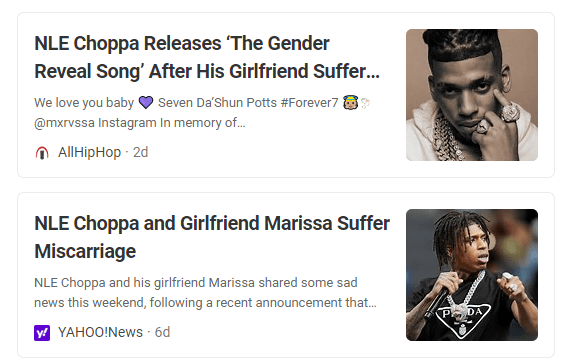 March 13, 2022 SACRIFICE A FIRST BORN. NLE CHOPPA ANNOUNCES MISCARRIAGE BY GIRLFRIEND MARISSA 3/5/22. ANYTHING FOR THE HEADLINE NEWS … 4 MONTHS 5 DAYS AFTER HIS BIRTHDAY GIVE KNOWLEDGE AND SHARE THIS! Click to share on Facebook (Opens in new window) Facebook Click to share on Telegram (Opens in new window) Telegram Click to share on X (Opens in new window) X Like Loading... Related