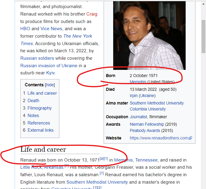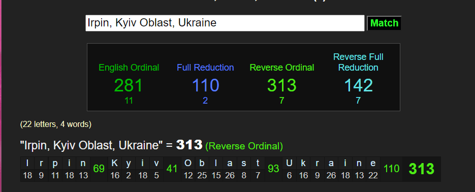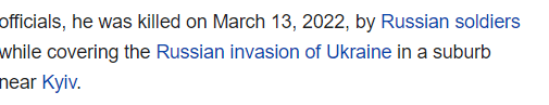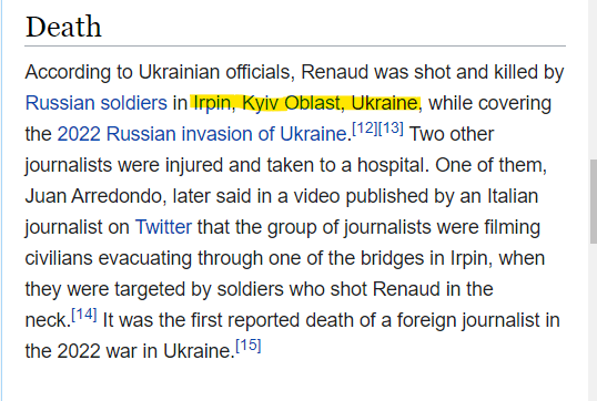 SO HE WAS REPORTED KILLED IN IRPIN, KYIV, OBLAST, UKRAINE.. KILLED ON 3/13 HMMMM 313