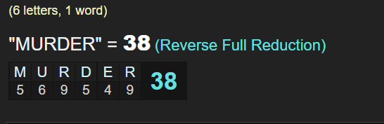 WE KNOW 38 IS THE MURDER NUMBER AND HERE WE ARE IN 2022
