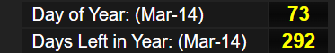 THEY ARE REPORTING HE DIED YESTERDAY ON THE 14TH ON THE 73 DAY OF THE YEAR
