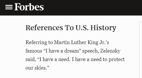 HE GETS ON T.V. QUOTING MARTIN LUTHER KING I HAVE A DREAM SPEECH. ASKING FOR MONEY AND A NO-FLY ZONE