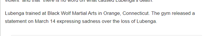 he trained at BLACK WOLF MARTIAL ARTS and they announced his death.
