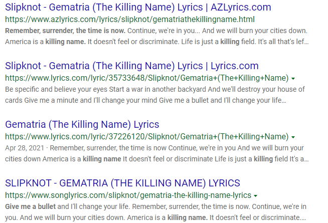 SLIP KNOT HAS A SONG CALLED GEMATRIA, THE KILLING GAME