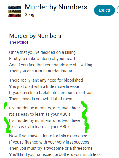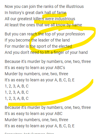THE SONG MURDER BY NUMBERS CAME OUT IN 83.