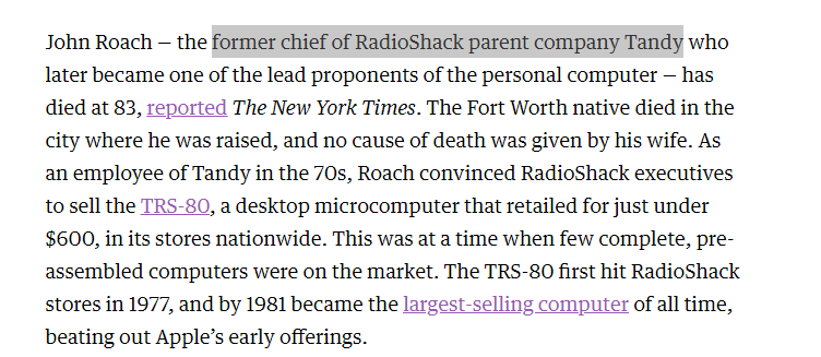 THE HEADLINES READ … FORMER CHIEF RADIOSHACK PARENT COMPANY TANDY