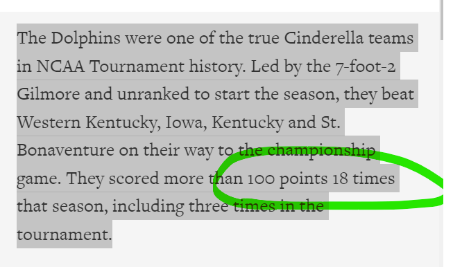 ALL THE ARTICLES OF HIS DEATH SPEAK OF HIM AND THE CINDERELLA TEAMS SCORING MORE THAN 100 POINTS 18 TIMES …