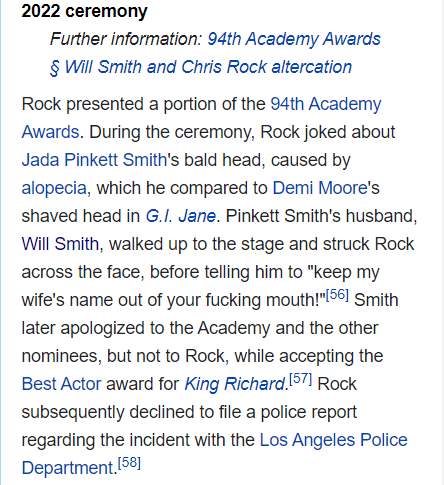 94th awards and Will Smith slapping Chris Rock is headline news