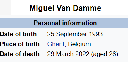 HE PLAYED (44) MATCHES DEAD 6 MONTHS 4 DAYS AFTER HIS BIRTHDAY (64) DEAD AGE (28)
