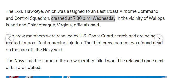 March 31, 2022 ON 3/30 WEDNESDAY NIGHT A NAVY AIRCRAFT CRASHED… A JESUIT ORDER RITUAL CRASHED AT 7:30 THE SACRIFICE NUMBER ON THE 89TH DAY OF THE YEAR THE ED-2 HAWKEYE CRASHED ON THE 89TH DAY OF THE YEAR GIVE KNOWLEDGE AND SHARE THIS! Click to share on Facebook (Opens in new window) Facebook Click to share on Telegram (Opens in new window) Telegram Click to share on X (Opens in new window) X Like Loading... Related