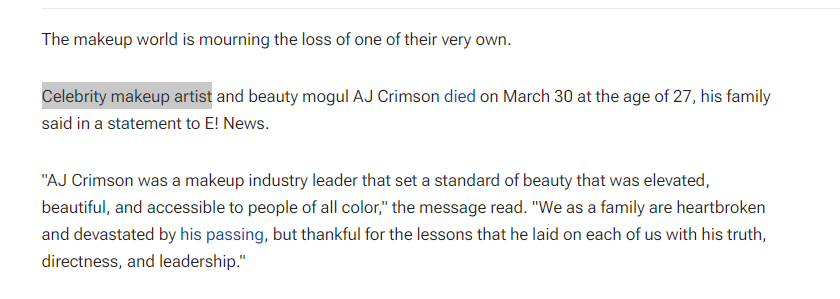 CELEBRITY MAKEUP ARTIST DEAD AT 27