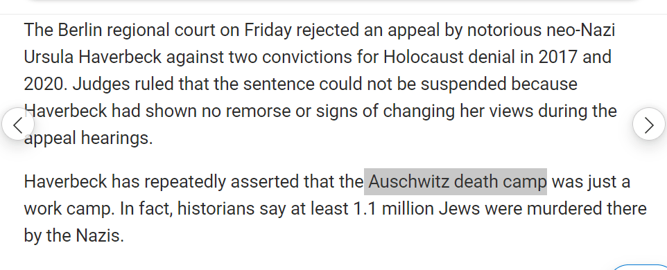 SHE DENIES THE AUSCHWITZ DEATH CAMP