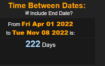 AND ITS 222 DAYS BEFORE HER BIRTHDAY