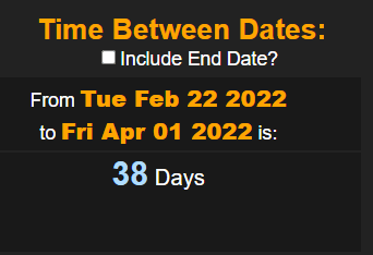 FROM START OF THE UKRAINE RUSSIA WAR 2/22/22 TO TODAY IS 38 DAYS