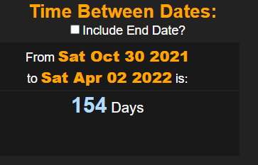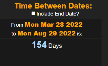 or 155 days if you count the end date