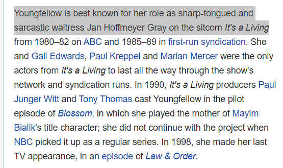 she is best known for her role in Its A Living which debut on 10/30/1980