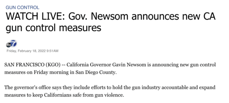 shooting 44 days after Newsome gun control speech on 2/18/22