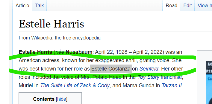 SHE APPEARED IN 27 EPISODES AND DIES 27 DAYS BEFORE JERRY SEINFELD BIRTHDAY