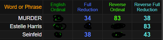 SHE IS DEAD 38 WEEKS AFTER THE ANNIVERSARY OF THE RELEASE OF SEINFELD