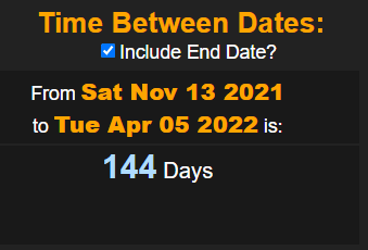 its 144 days after the mayor birthday and he is currently 71. numbers we see in all jesuit rituals.