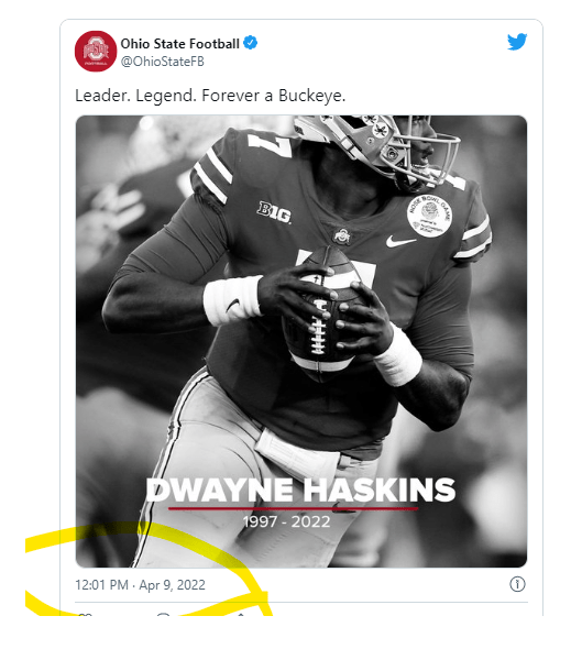 his college the Buckeyes post his death at 12:01 like 121 and he signed with the steelers on 1/21